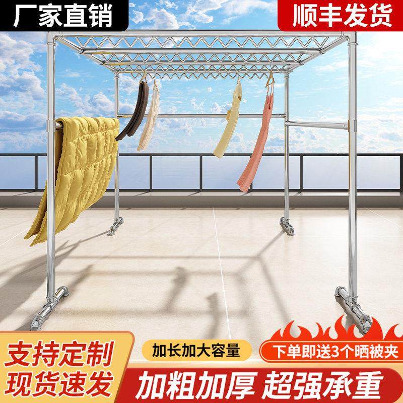 室外晾衣架落地户外顶楼晒被子神器折叠不锈钢庭院晒衣架防风衣杆