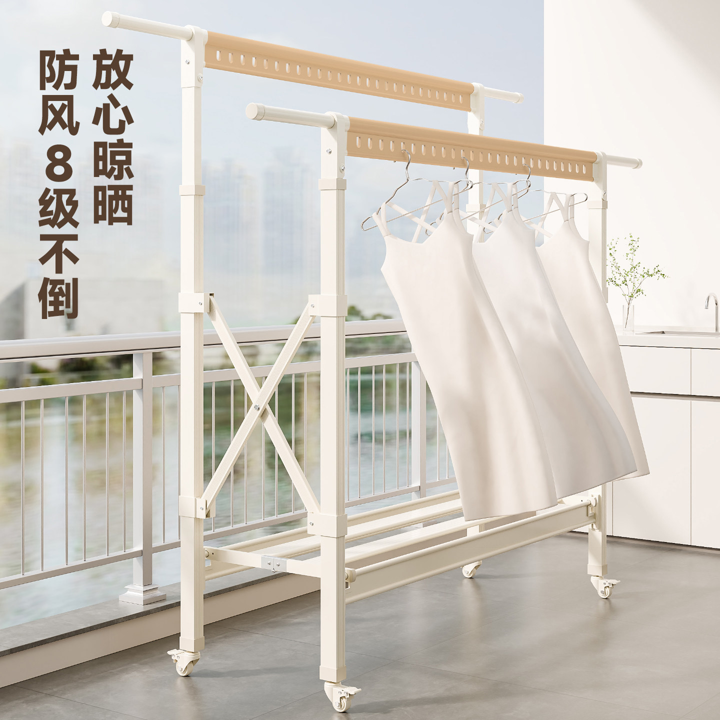 佳帮手2026晾衣架落地折叠家用阳台室外伸缩凉衣杆室内晒被子神器