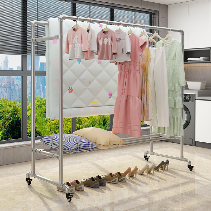 镀锌钢管挂衣架落地卧室家用阳台室外晾衣架带轮子防风晒衣服被子
