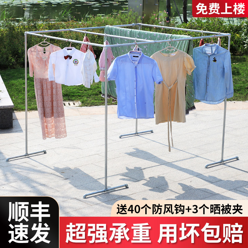 镀锌钢管晾衣架简易落地户外室外双杆水管晒被家用阳台挂衣凉衣架