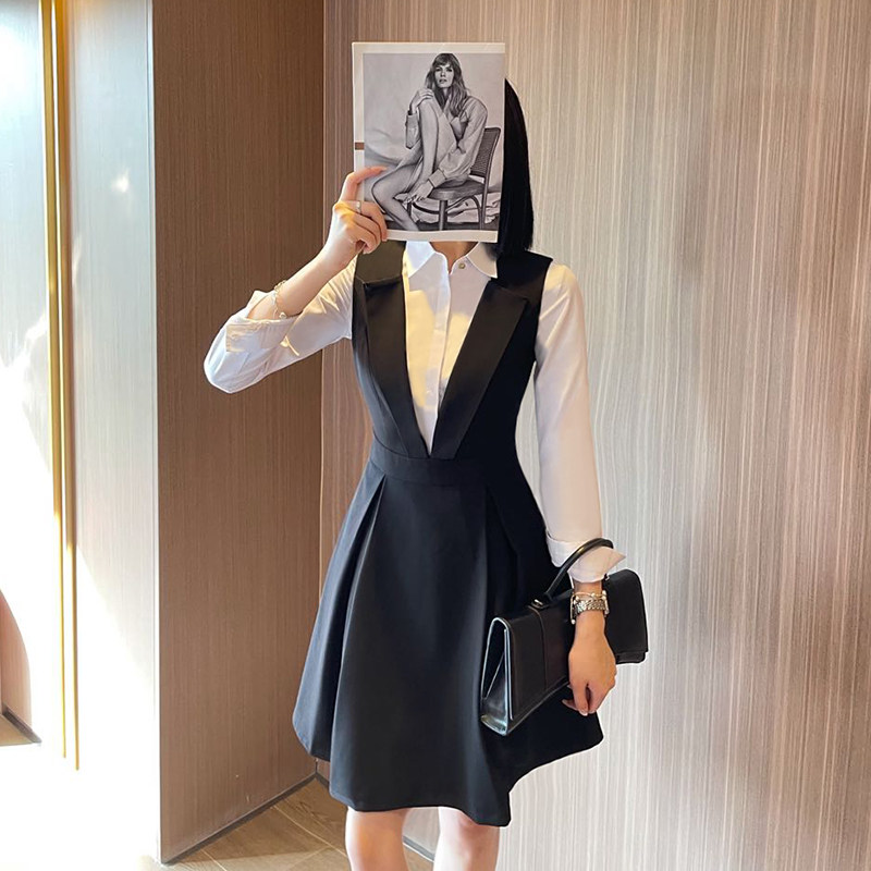 赫本风小黑裙马甲背心连衣裙秋新款收腰显瘦V领小个子打底裙A字裙