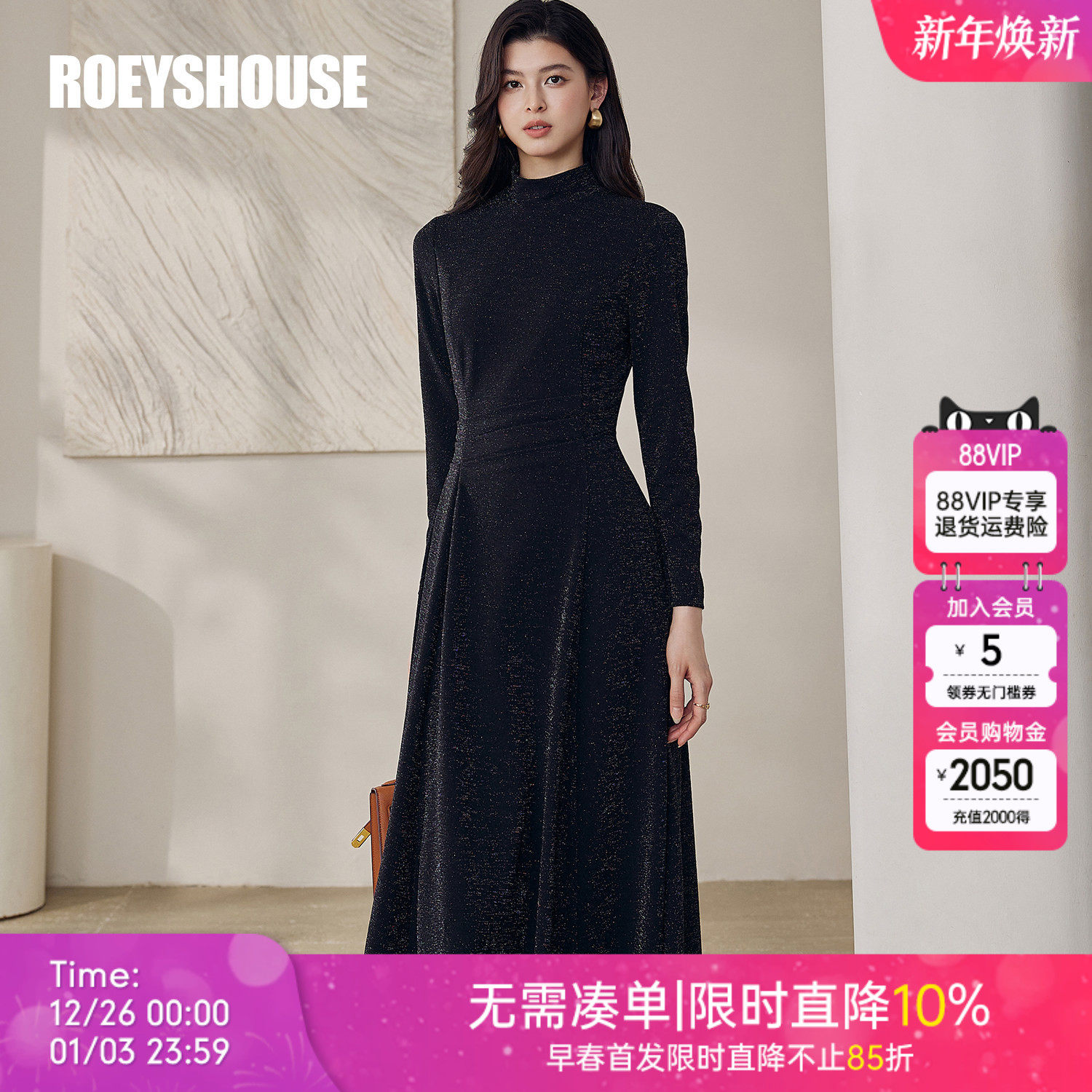 罗衣贵气感亮丝半高领内搭连衣裙冬正式场合打底针织小黑裙13125