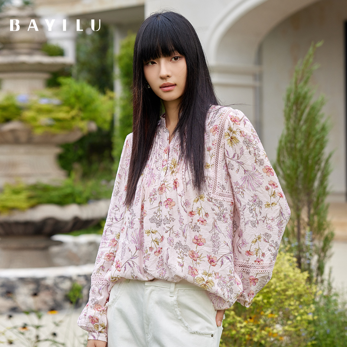 芭依璐2025秋冬新款衬衫长袖碎花设计感百搭韩版宽松显瘦女款上衣