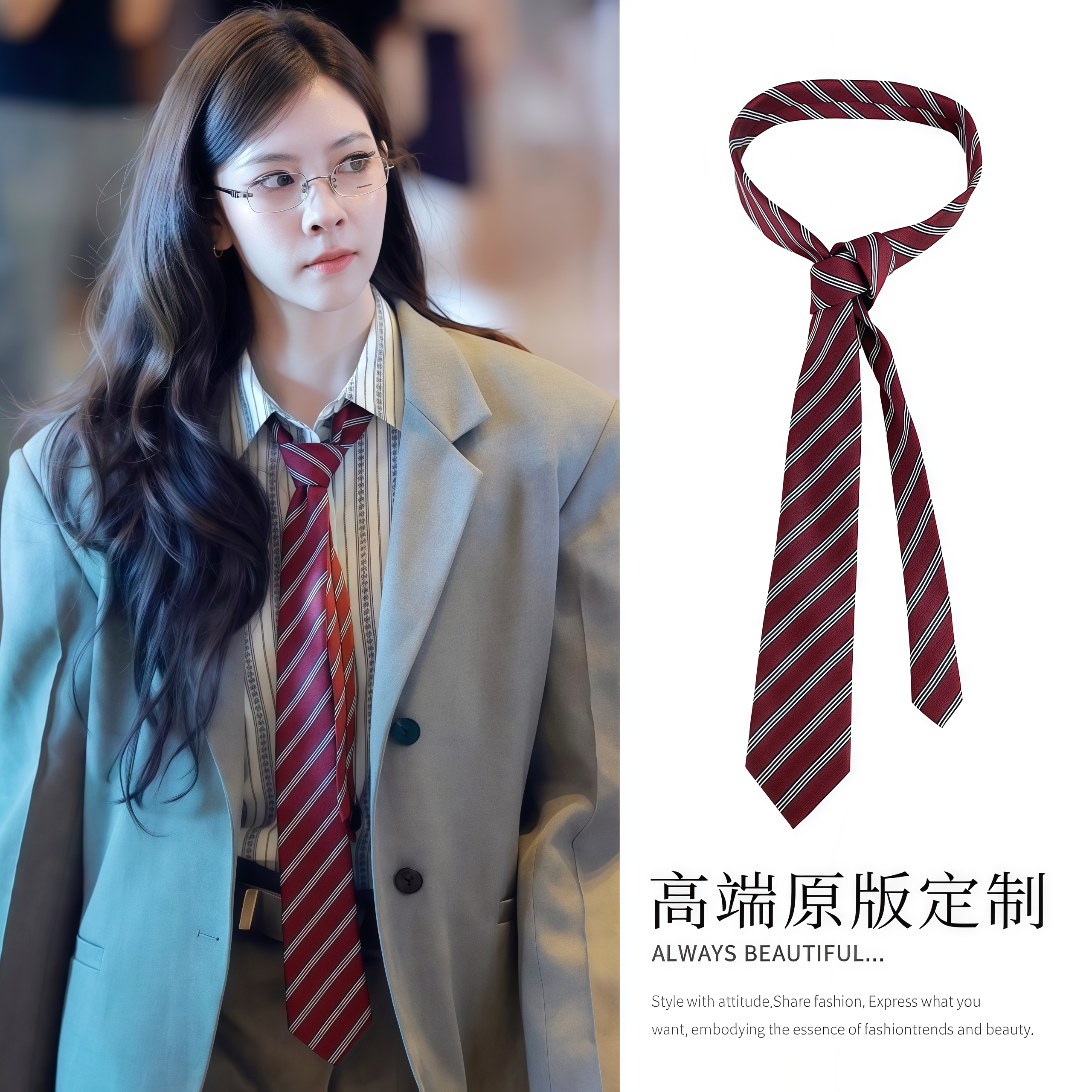 宋妍霏同款红色条纹领带女款学院风韩版休闲日常穿搭衬衫西装配饰