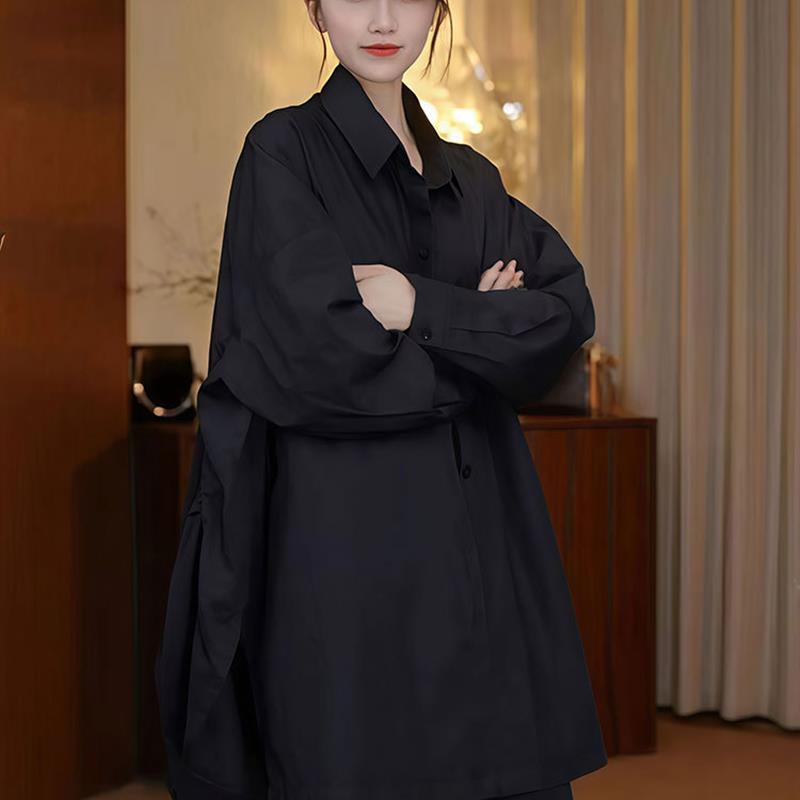 极速韩版翻领白色衬衫女款2025新款中长款侧边开叉慵懒风宽松衬衣