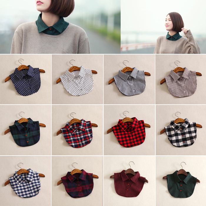 百搭格子衬衫假领子装饰领磨毛冬季女款衬衣领男女士纯棉衣领韩版