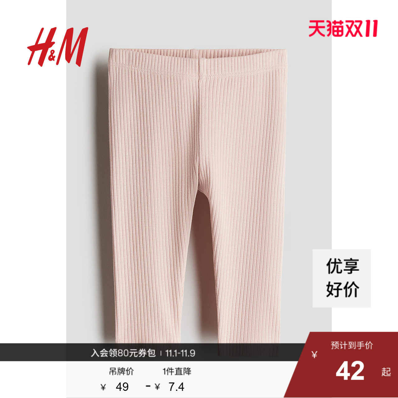 HM童装女婴裤子秋季休闲舒适柔软罗纹棉质打底裤1226638
