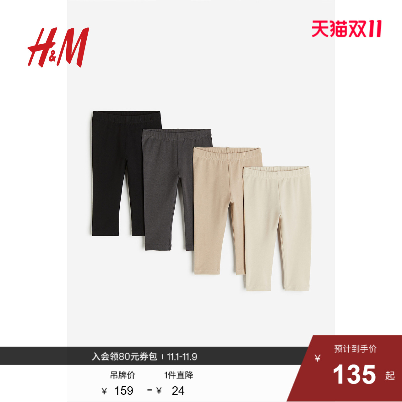 HM童装女婴裤子4件装秋季柔软棉质外出长裤打底裤1173748
