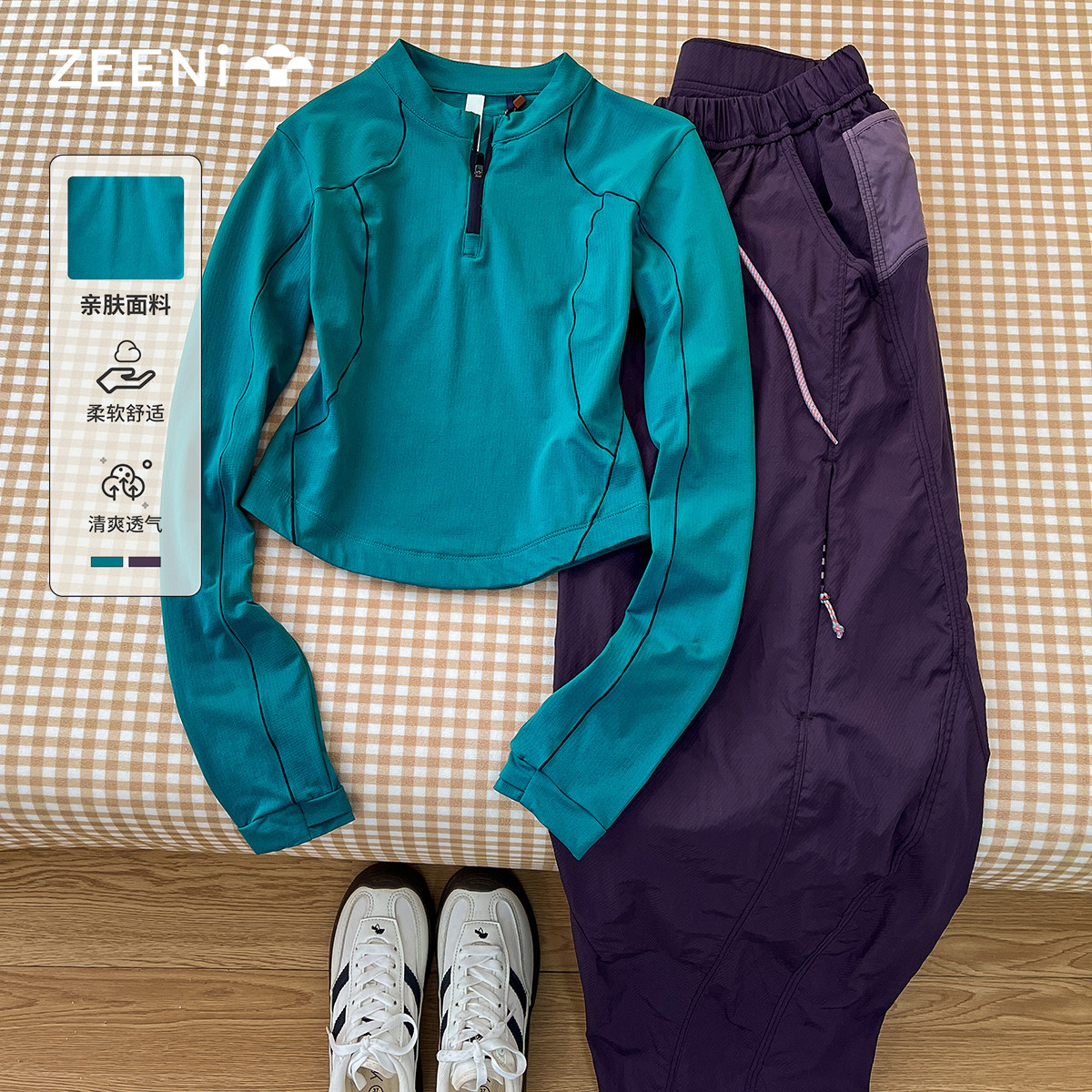 ZEENI 户外修身短款长袖速干衣女长裤跑步爬山登山健身服运动套装