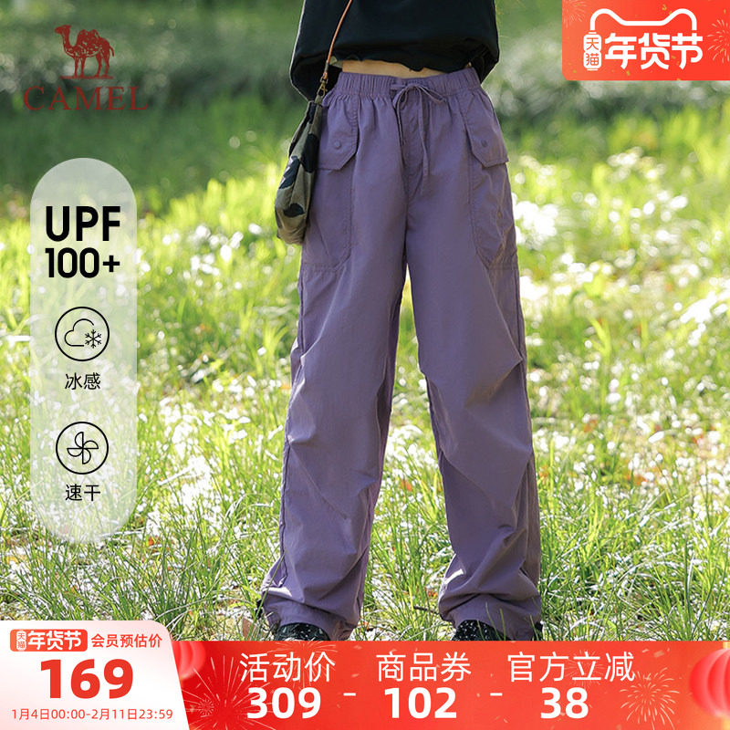 骆驼速干伞兵裤女户外工装裤夏冰感防晒阔腿裤徒步登山运动长裤男