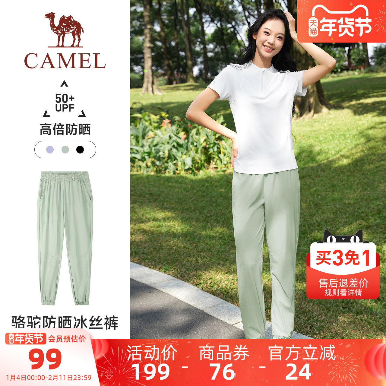 骆驼健身裤女士2025春夏新款户外冰丝防晒裤运动束脚跑步速干长裤