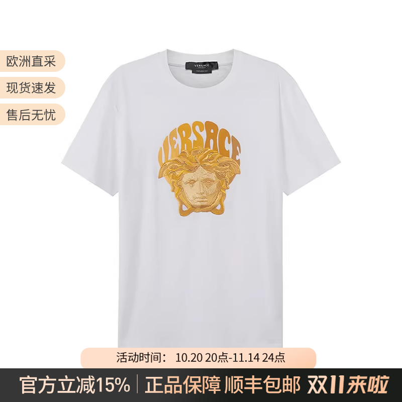 【自营】Versace/范思哲男士美杜莎图案刺绣休闲棉质短袖T恤时尚