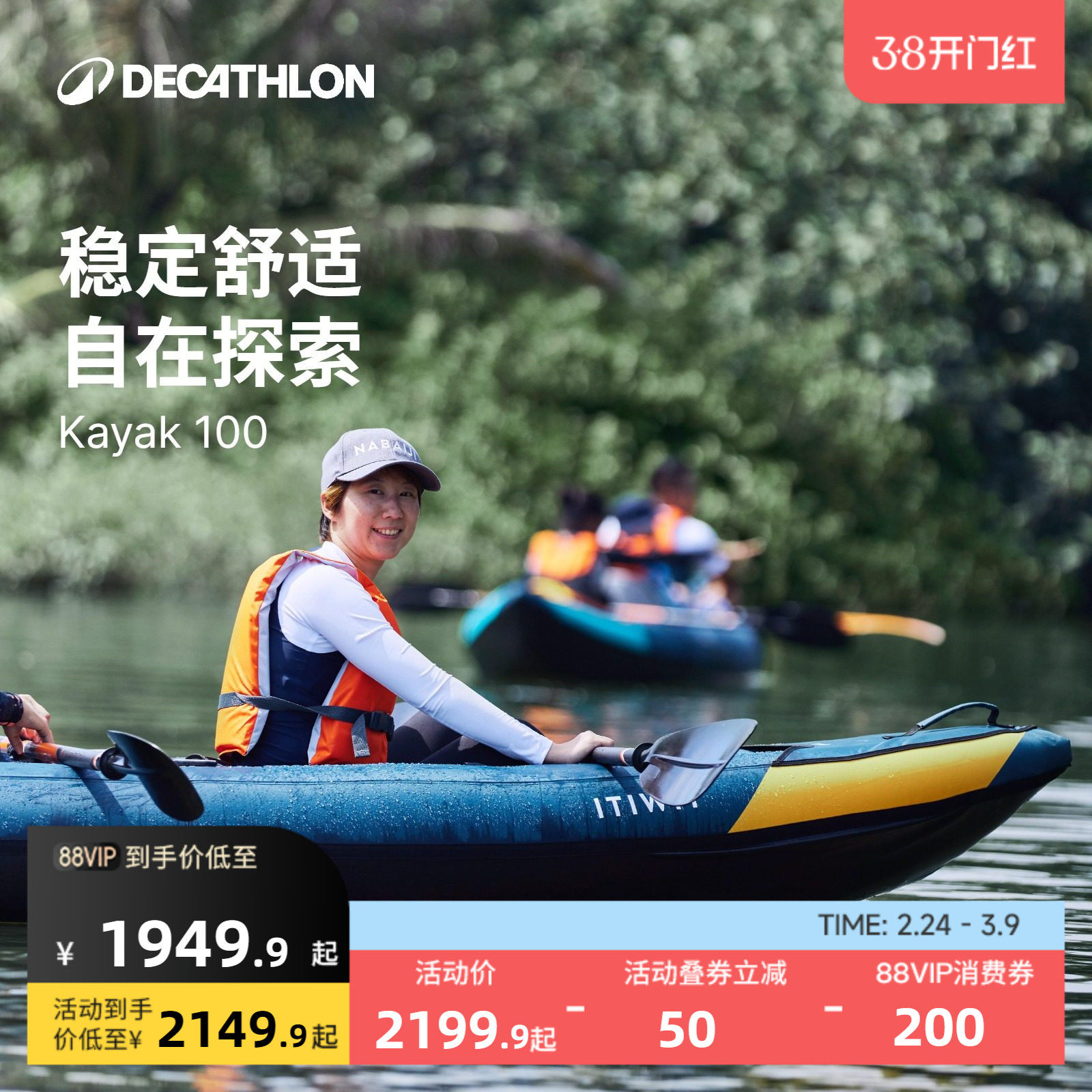 迪卡侬皮划艇充气船橡皮艇加厚钓鱼路亚船充气皮划艇冲锋舟OVKK