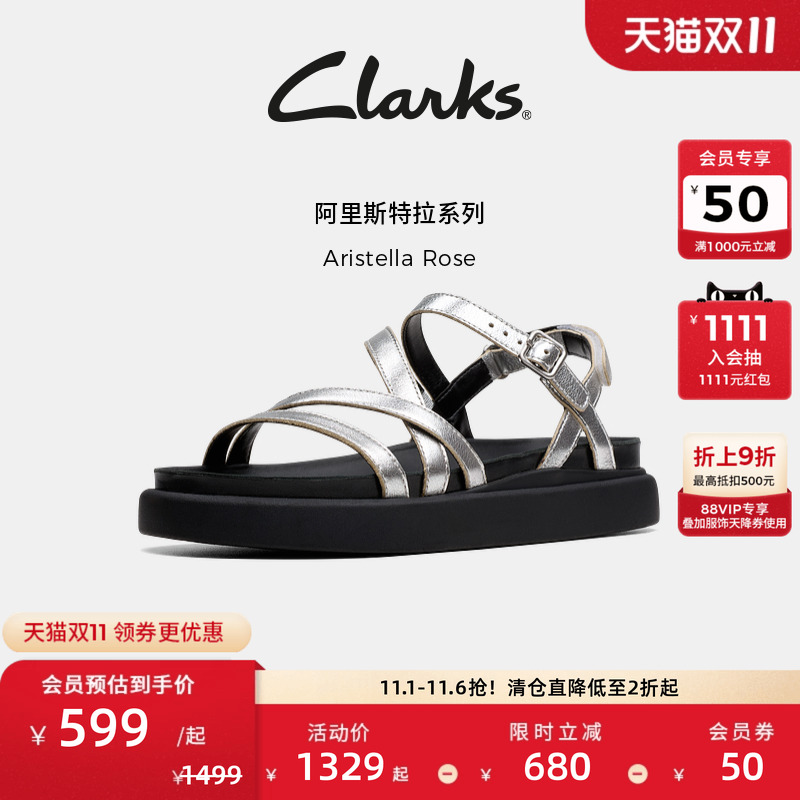 Clarks其乐Aristella Rose女士新款夏季优雅一字带平底凉鞋