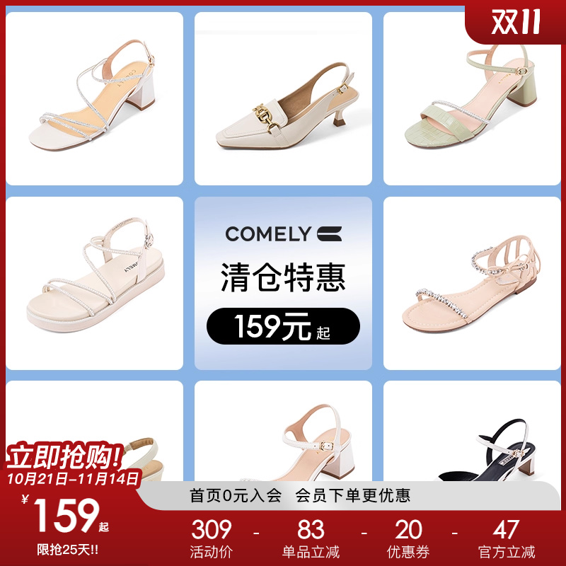 康莉comely平底凉鞋女一字带低跟凉鞋中后空鞋 159元起不定时更新