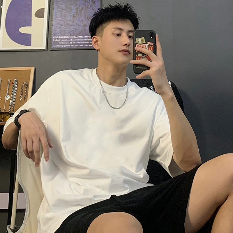 2件装莫代尔棉短袖t恤男修身纯色黑白圆领冰丝半袖加肥加大码体恤