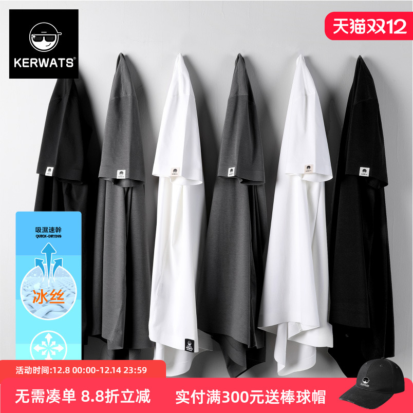 KERWATS大码冰丝t恤男装短袖夏天透气凉感速干薄款胖子圆领打底衫