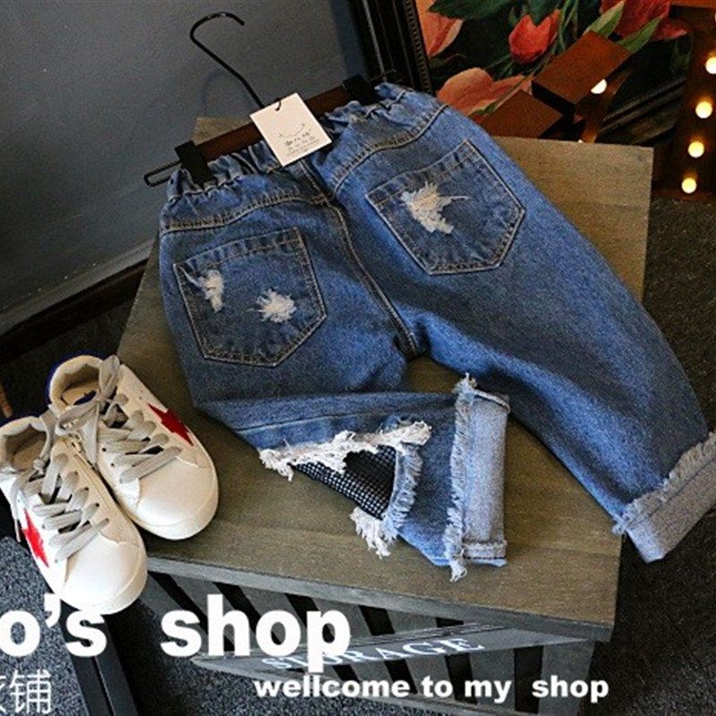 女童破洞牛仔裤2023春秋季儿童乞丐裤软牛仔宽松宝宝男童潮夏款