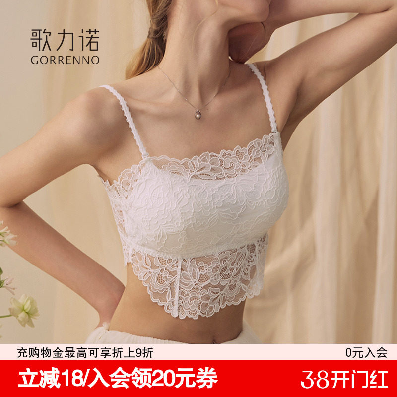 打底抹胸内搭文胸白色蕾丝带胸垫性感裹胸吊带美背心防走光内衣女