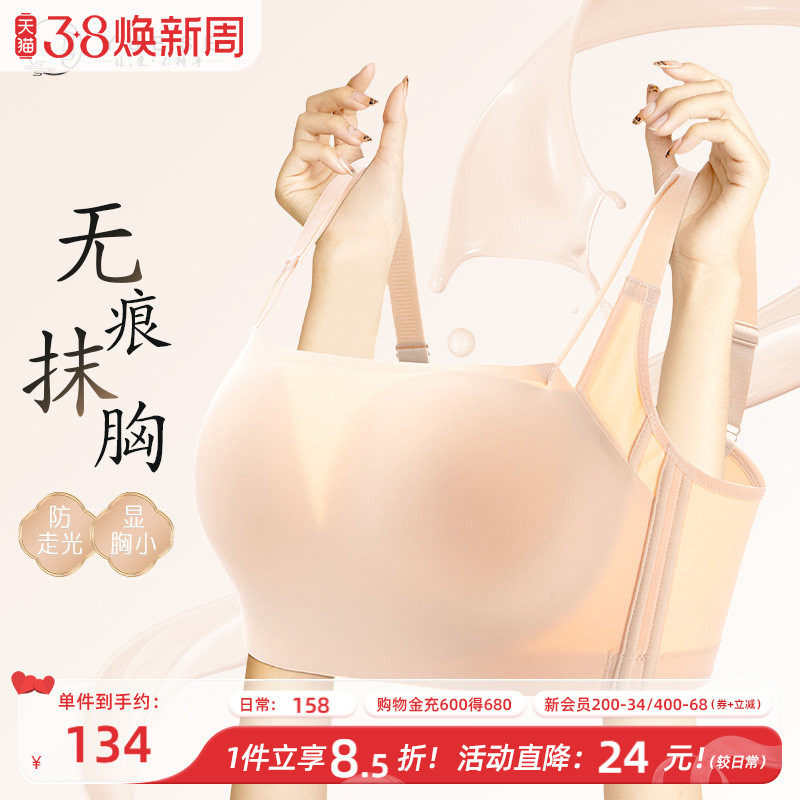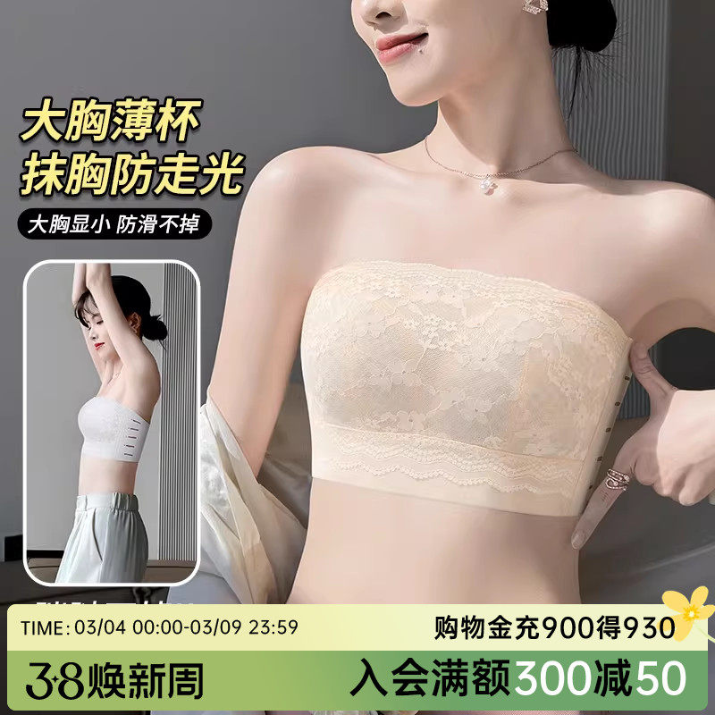 无痕抹胸防走光内衣女大胸显小胸无钢圈夏季薄款收副乳大码文胸罩