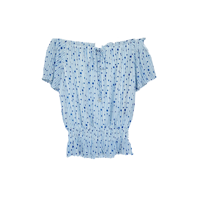 拉系列专柜正品清新淑女一字领条纹波点雪纺短款衬衫女夏1T001232