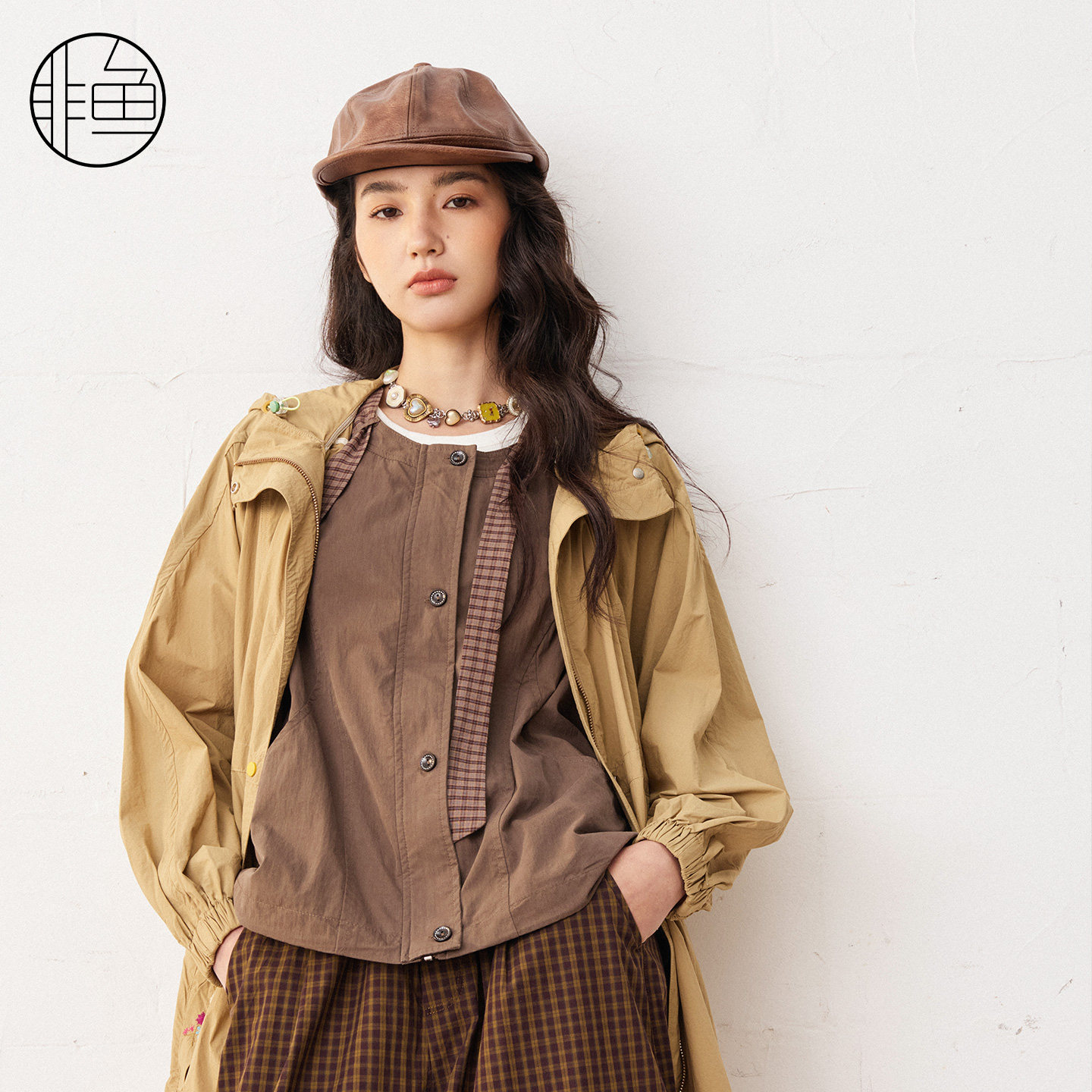 渔牌女装风衣外套女2024春秋新款文艺连帽中长款外套百搭FGGC3056