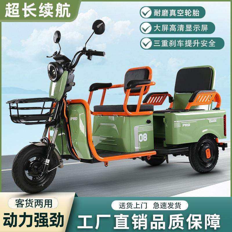 新款休闲电动三轮车成人家用接送孩子宝宝座代步车客货两用电瓶车