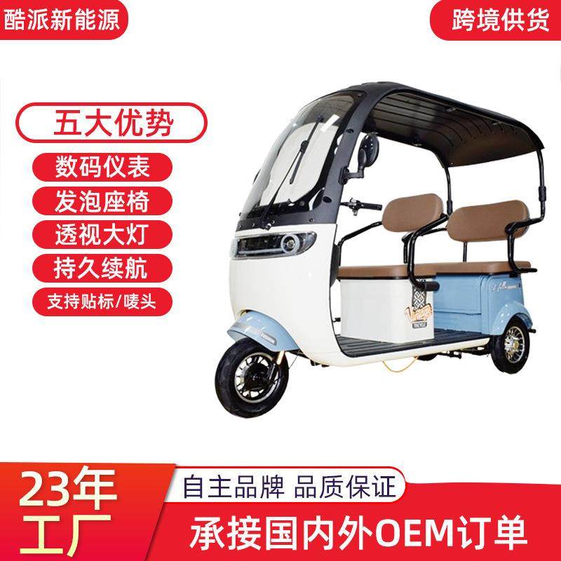 电动休闲三轮车家用三座成人代步车买菜女士接送孩子上学生带棚牌