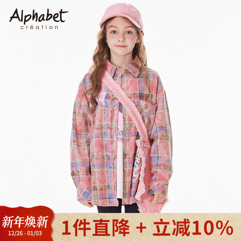 【全棉】25春秋新款女童长袖衬衫中长款儿童装格子衬衣外套洋气潮
