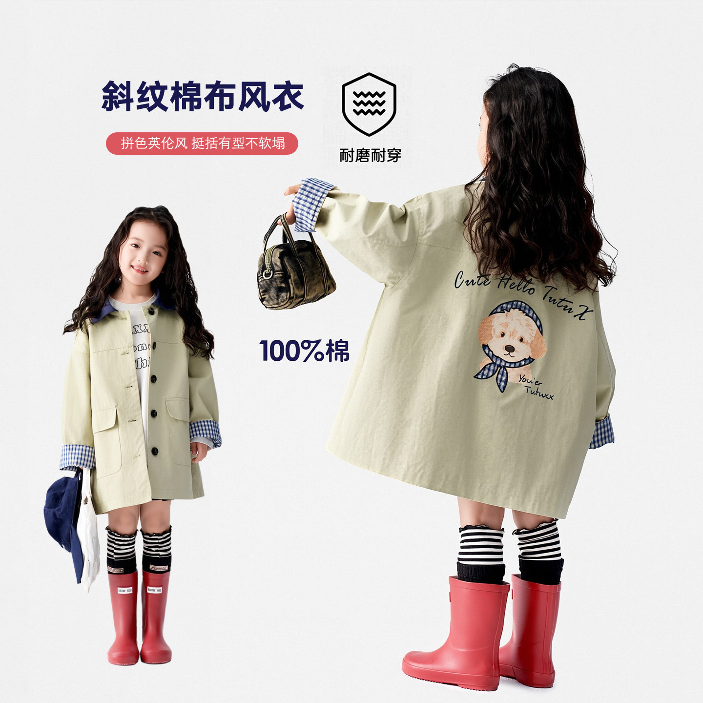 [7A抑菌]女童风衣春春款宝宝春季翻领外套纯棉小童中长款儿童衣服