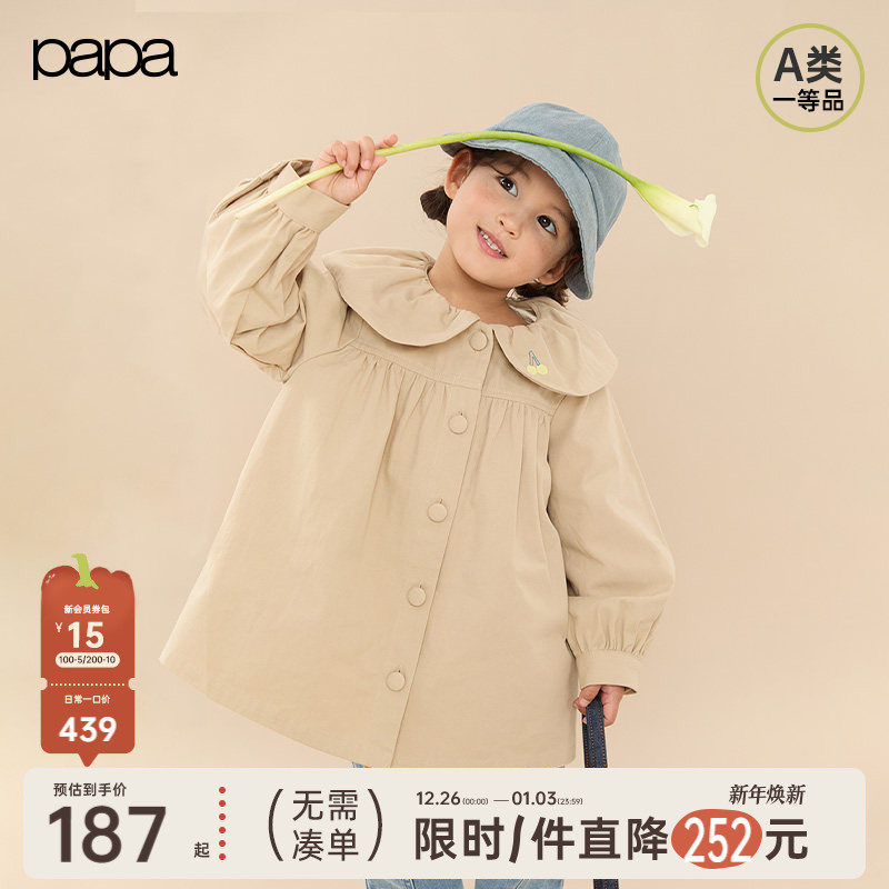 【商场同款】papa爬爬春季儿童风衣女童花瓣领中长款外套洋气百搭