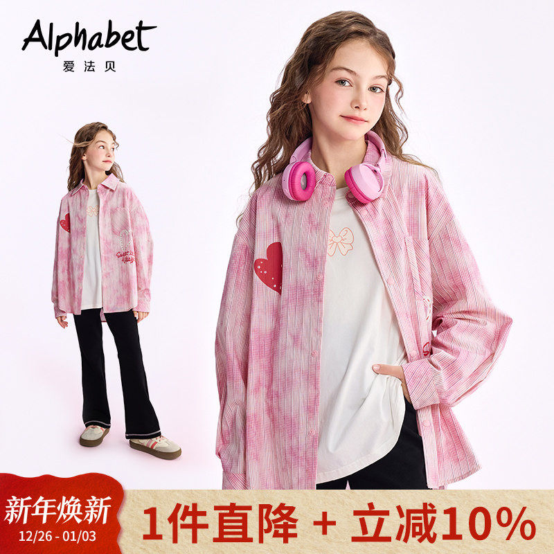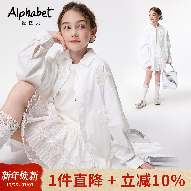 爱法贝25春秋新款女童长袖衬衫中长款儿童装蝴蝶结衬衣外套洋气潮