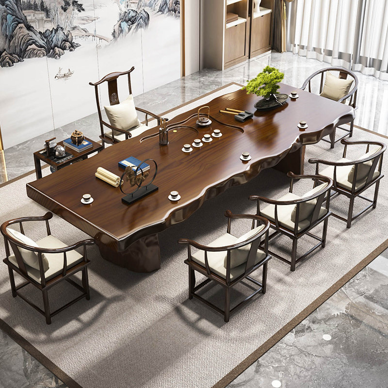 新中式南美胡桃木实木茶桌椅组合高端大板茶台客厅家用办公室茶几