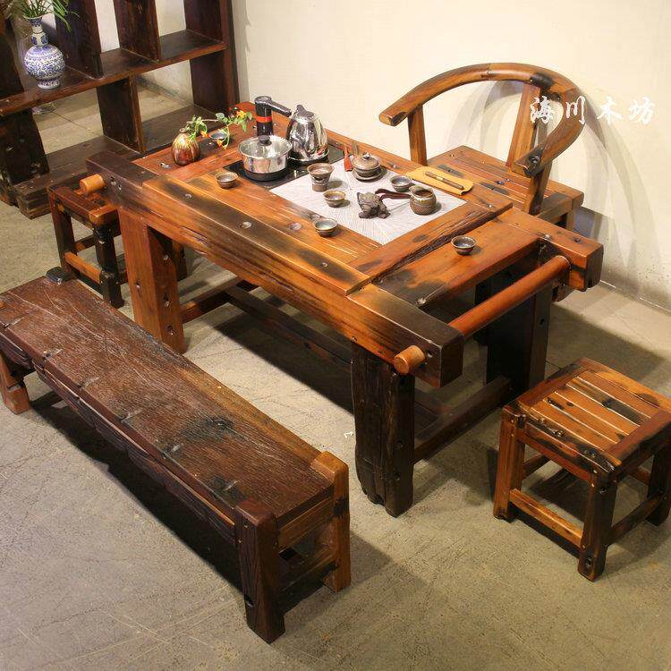 船木龙骨茶桌茶台椅组合茶艺实木功夫茶台中式新古典实木家具特价