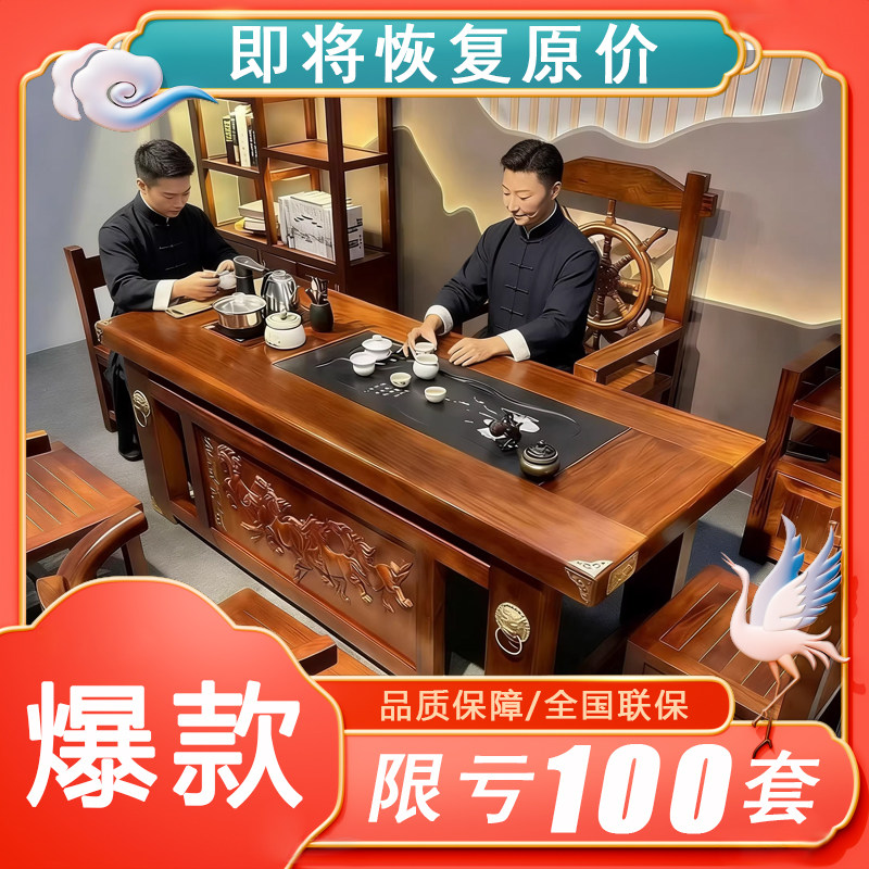 大板实木茶桌2026新款高端中式轻奢办公室茶台家用客厅茶桌椅组合