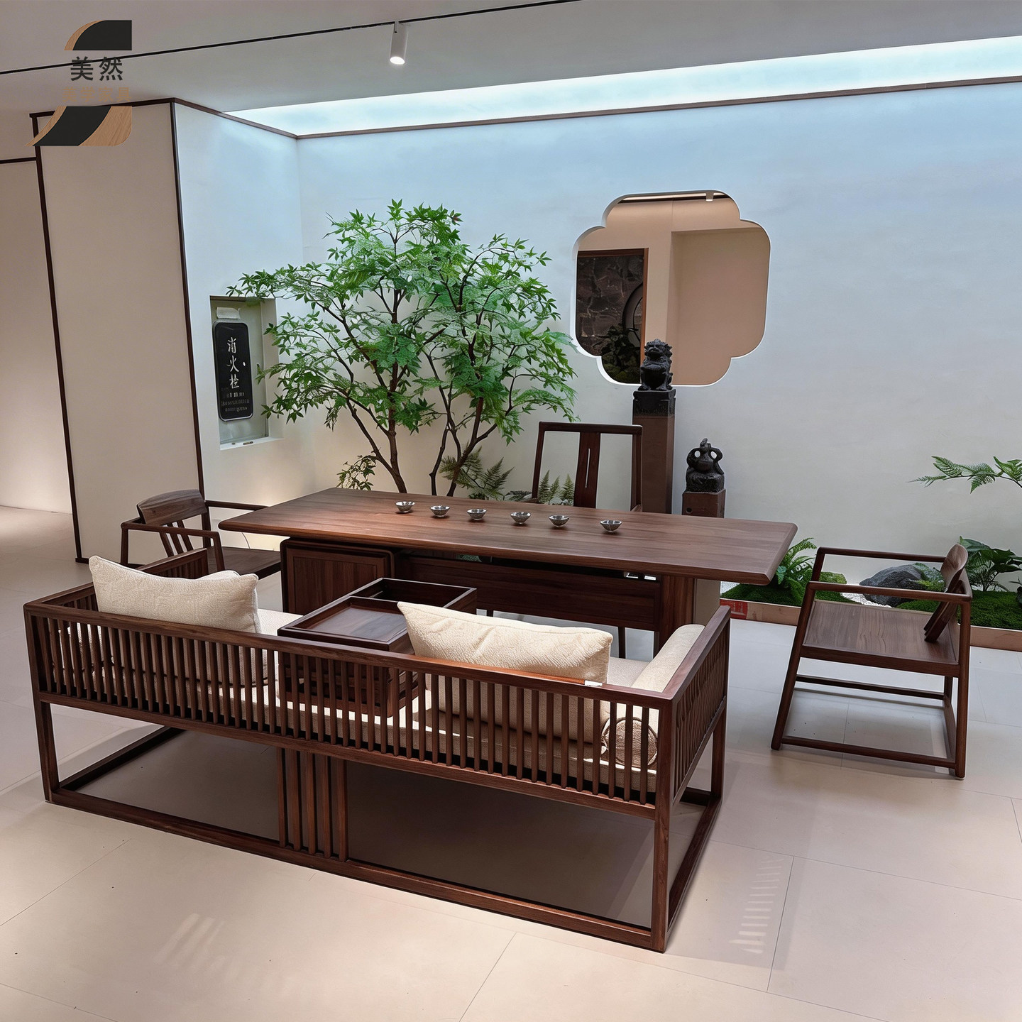 宋式美学北美黑胡桃木实木罗汉床茶桌椅组合新中式现代茶台泡茶桌