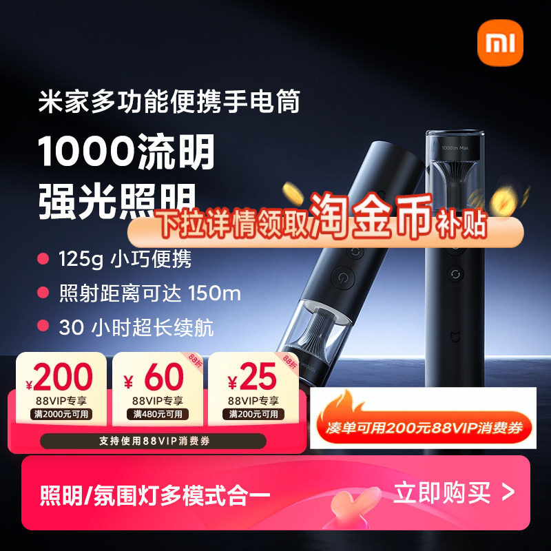 小米米家手电筒多功能家用超亮便携超长续航可充电户外强光手电筒