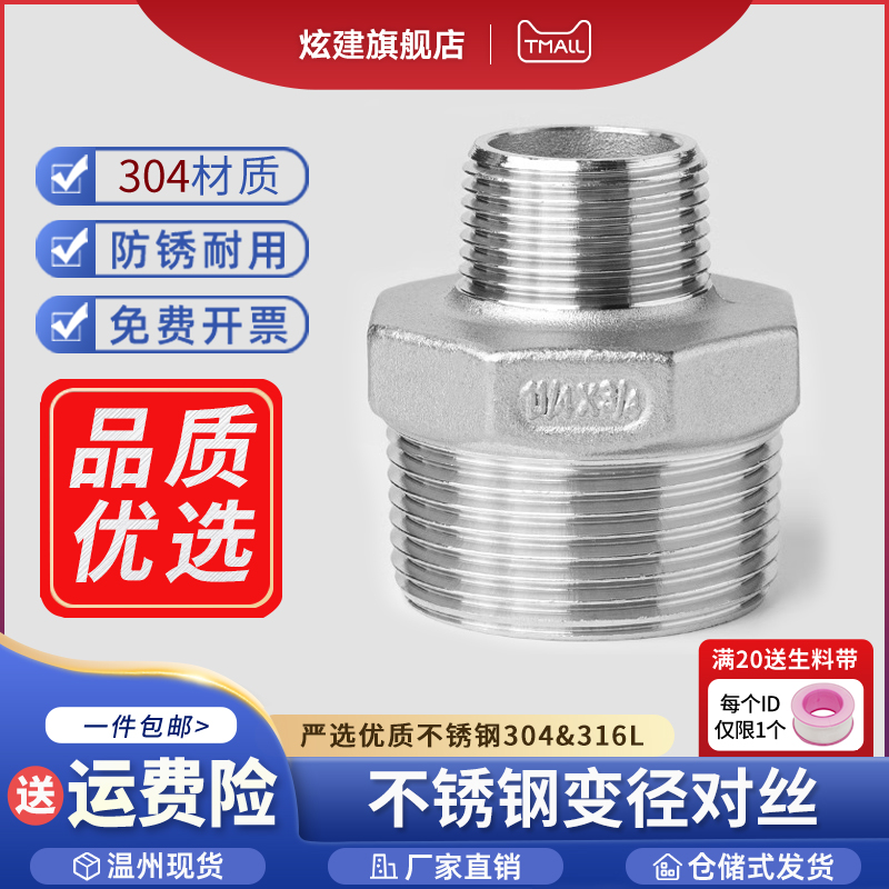 顶建不锈钢对丝接头变径双外丝直接加长2分转3分4分变6分水管配件
