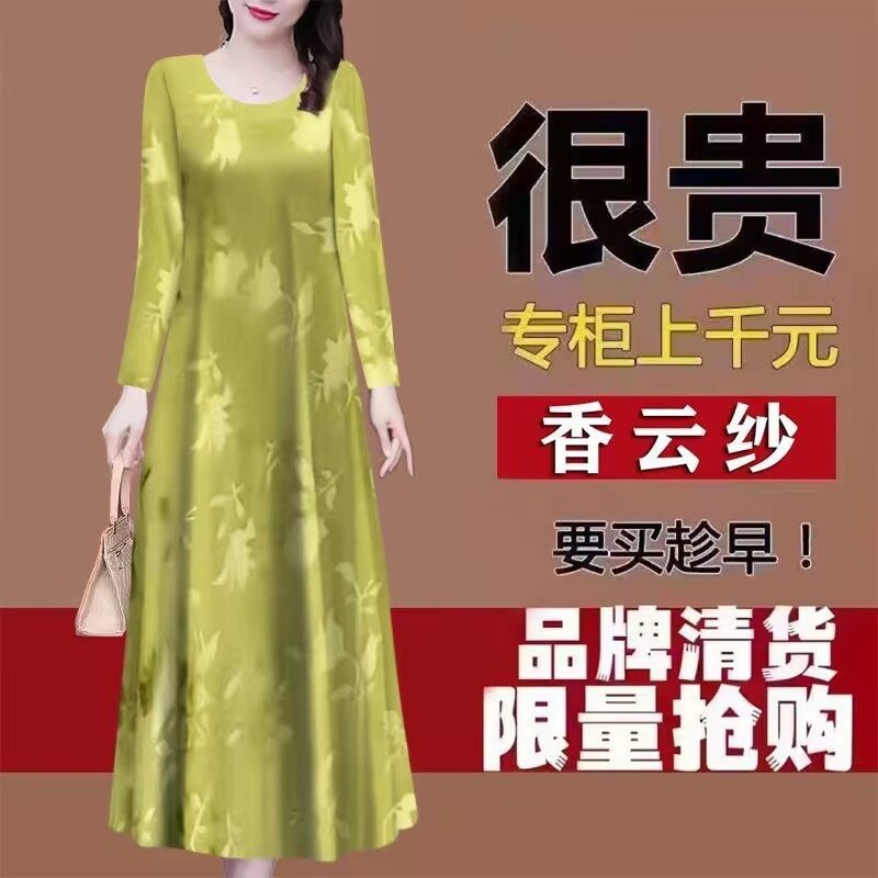 秋上新香云纱长袖连衣裙女2026年桑蚕丝中长款显瘦中年妈妈裙