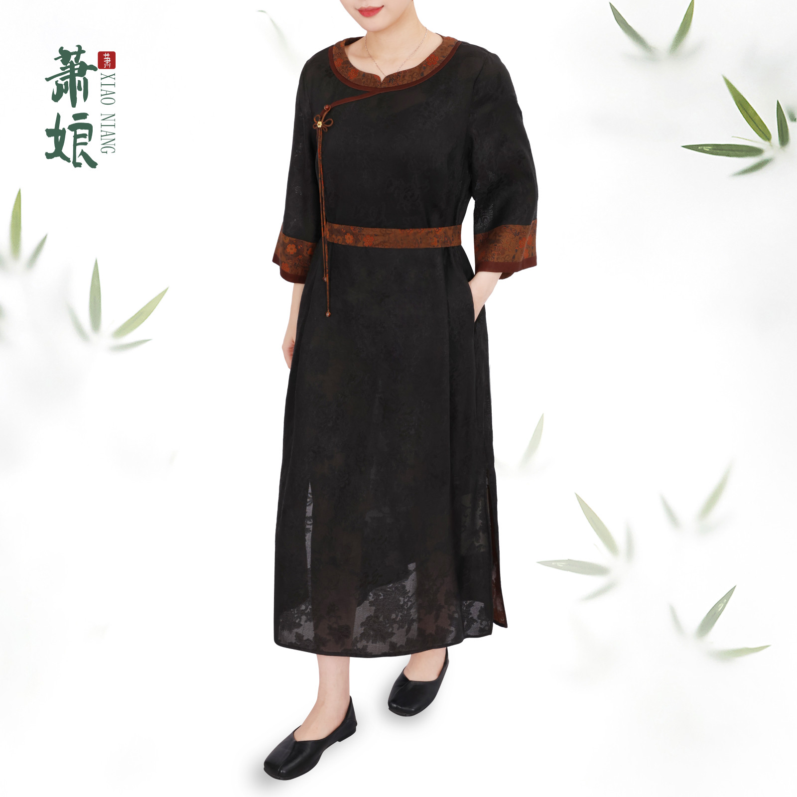 萧娘【虹霓】香云纱桑蚕丝连衣裙新中式国风复古桑蚕丝中长款1590