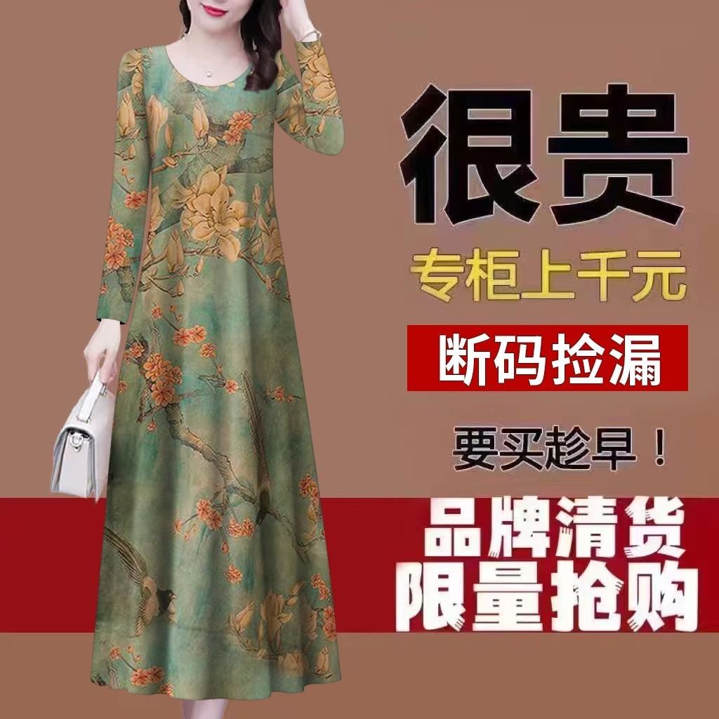 清仓仿香云纱高端连衣裙女2023秋季新款冰丝中长款中年妈妈裙子