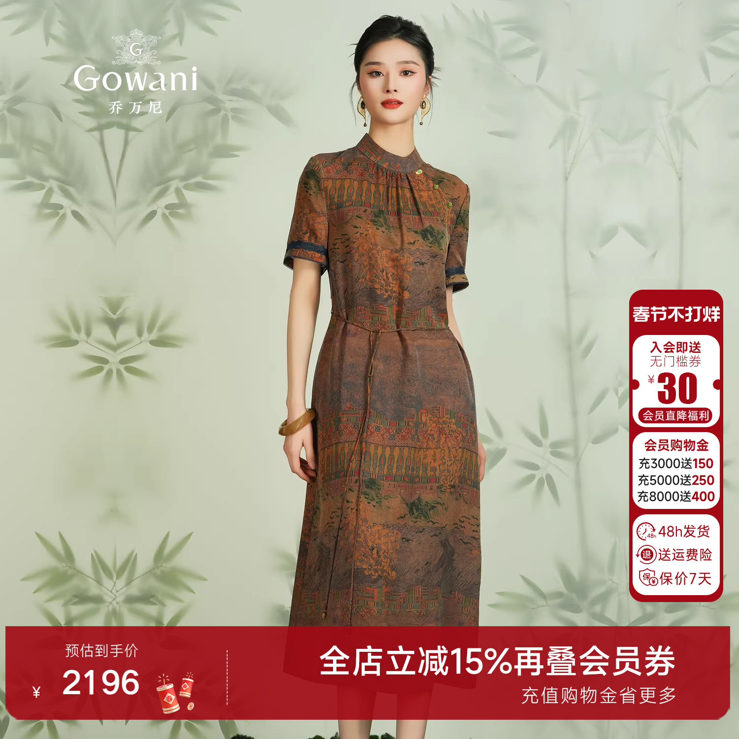乔万尼商场同款24mm重磅真丝香云纱连衣裙中长款收腰设计EM2E766