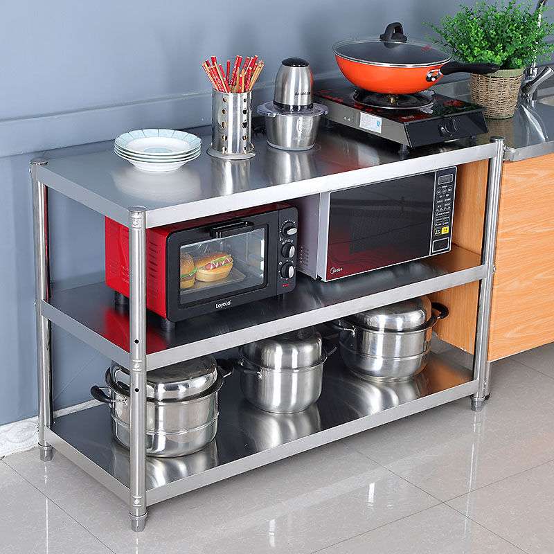 落地二层2厨房置物架微波炉收纳货架家用三层储物不锈钢放锅架子3