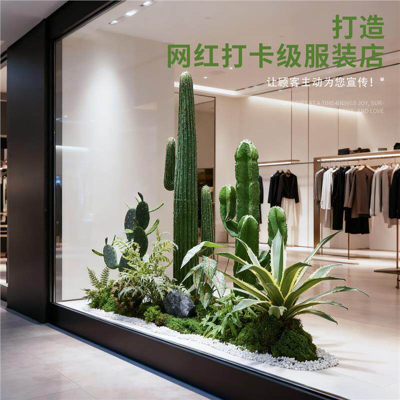 花箱仿真仙人掌造景商场隔断绿植景观装饰花店铺橱窗假植物盆景观