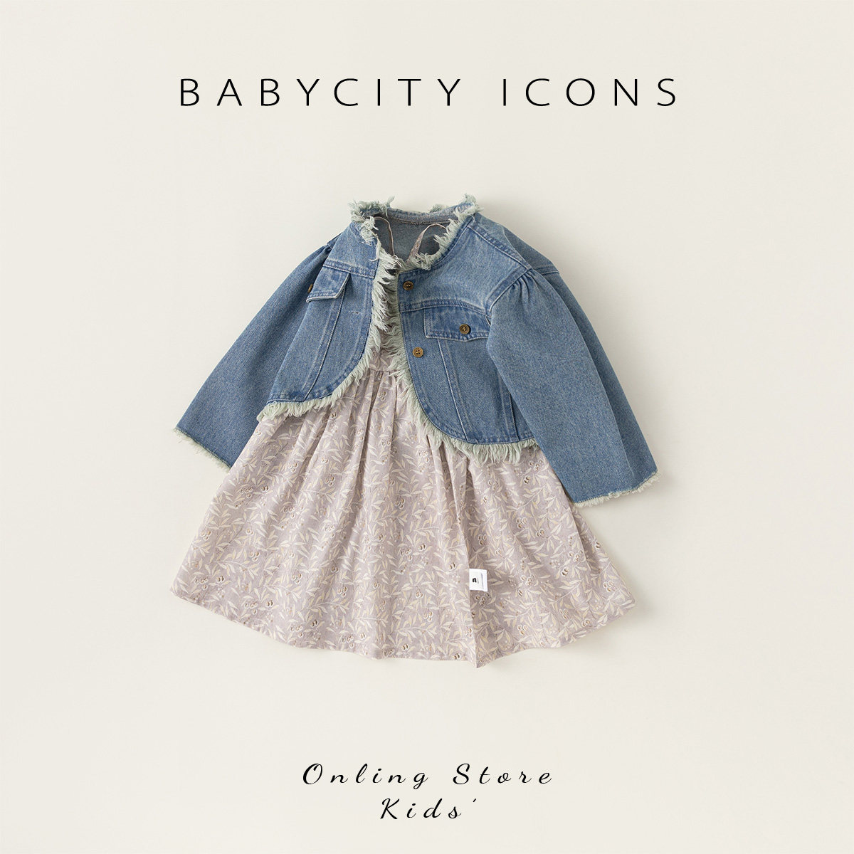 贝贝城儿童连衣裙套装洋气春装女童韩版牛仔衣两件套宝宝甜美衣服