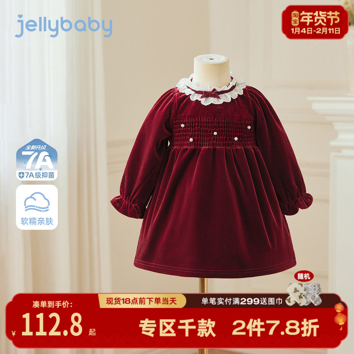 女宝宝连衣裙公主裙子婴儿周岁礼服拜年服女童新年公主裙春装童装
