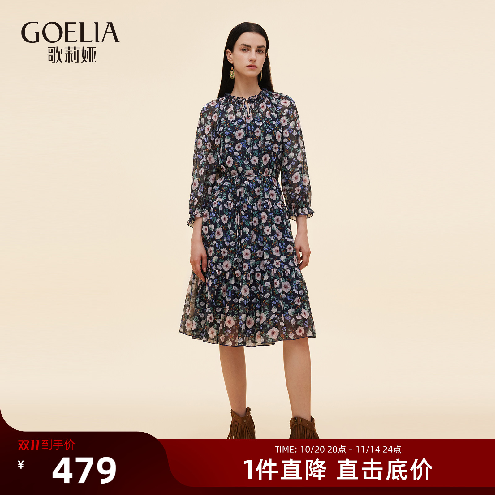 商场品质!宽松显瘦真丝印花大码连衣裙女装民族风妈妈款过膝长裙
