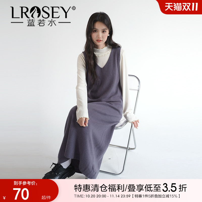 【清仓直降】大码秋冬女装100%羊毛针织背带裙气质V领内搭连衣裙