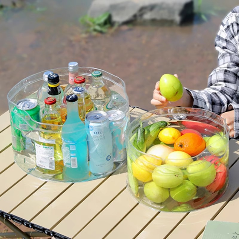 手提式折叠水盆便携式户外旅行洗菜洗衣洗脸透明压缩带提手储水袋