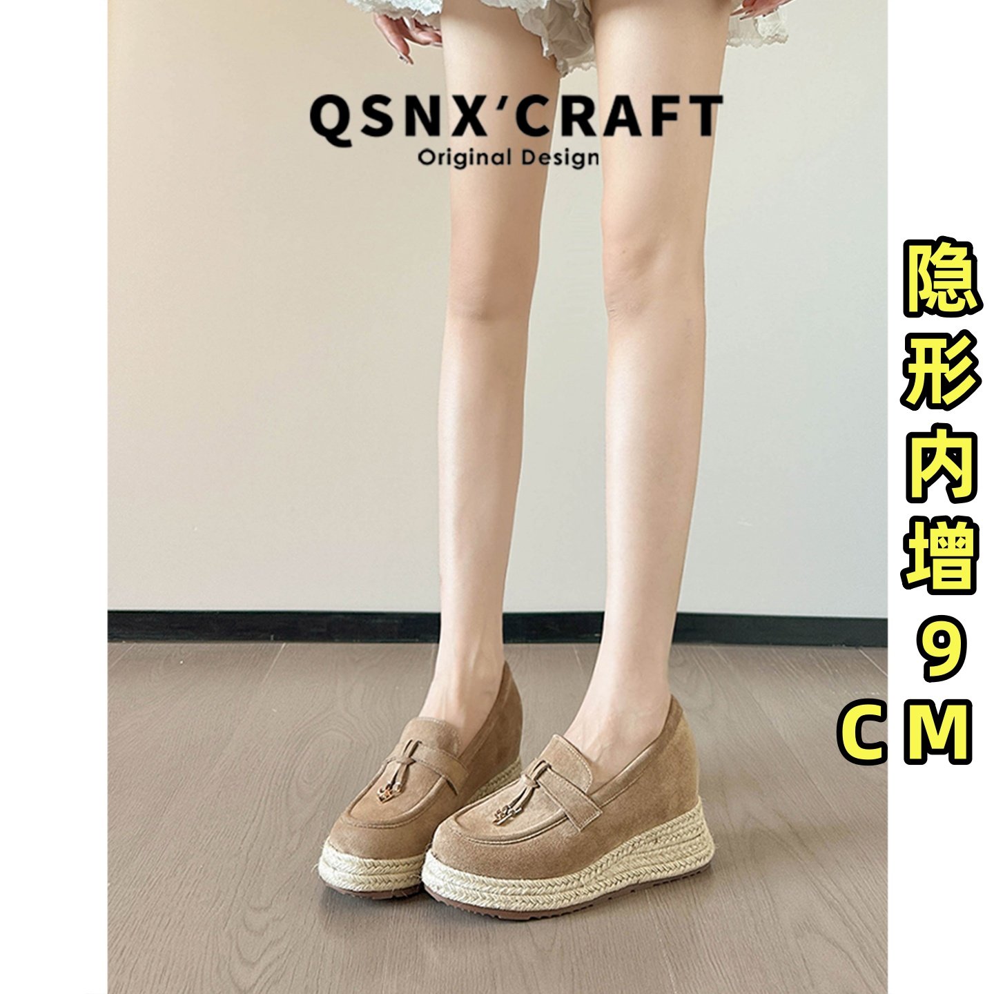 真皮版~内增高流苏乐福鞋女2025新款草编老钱风渔夫厚底加绒单鞋